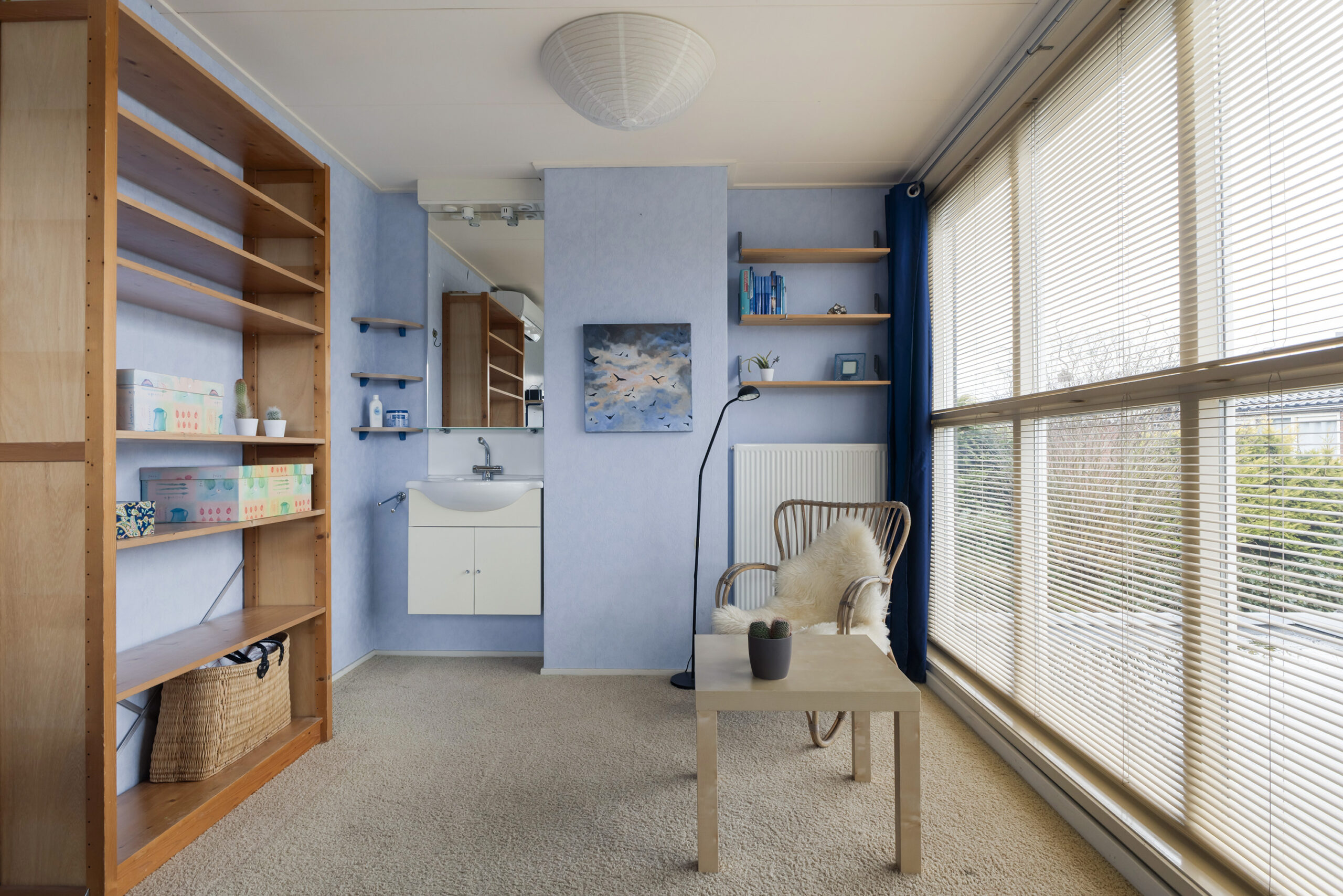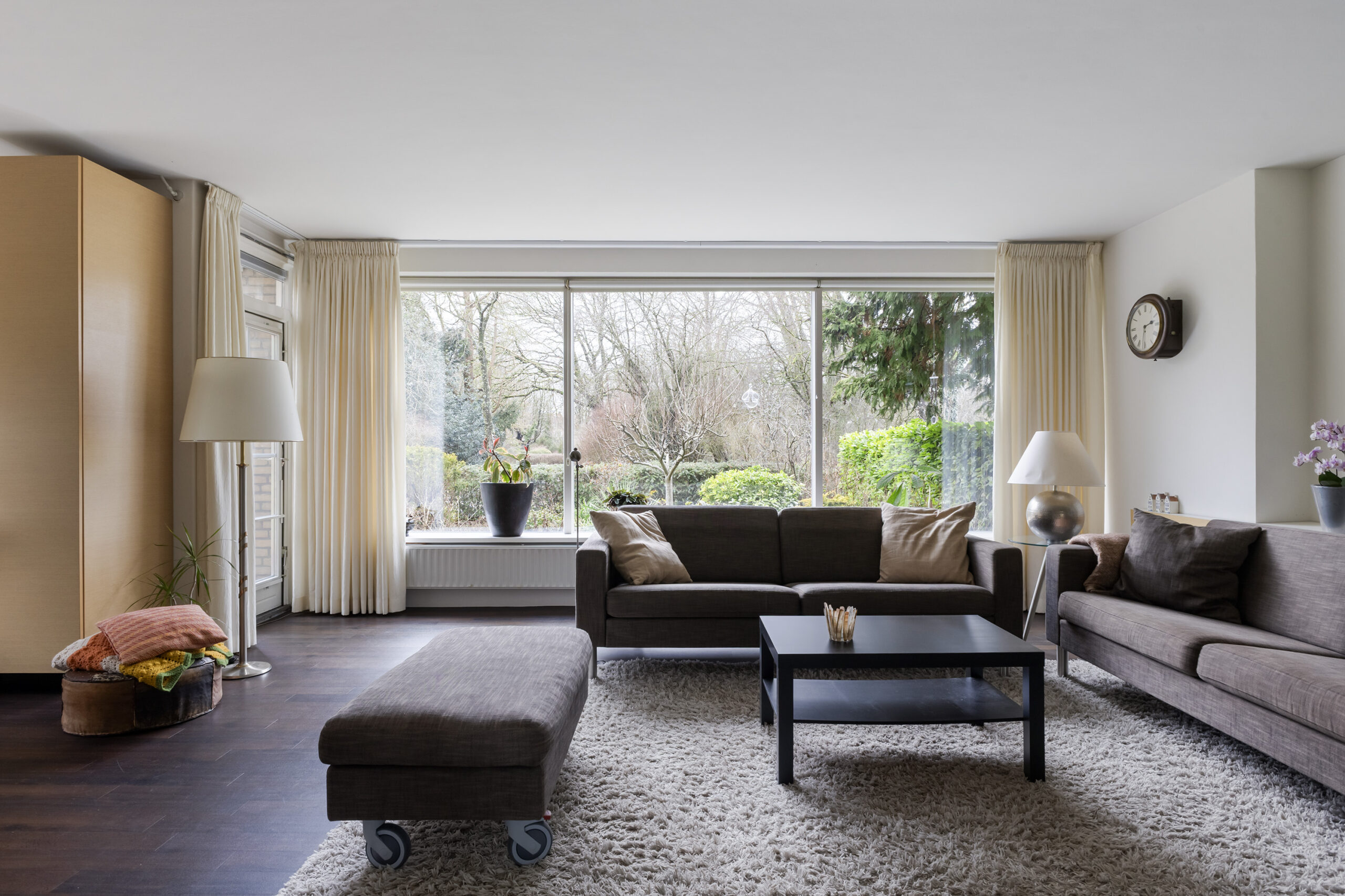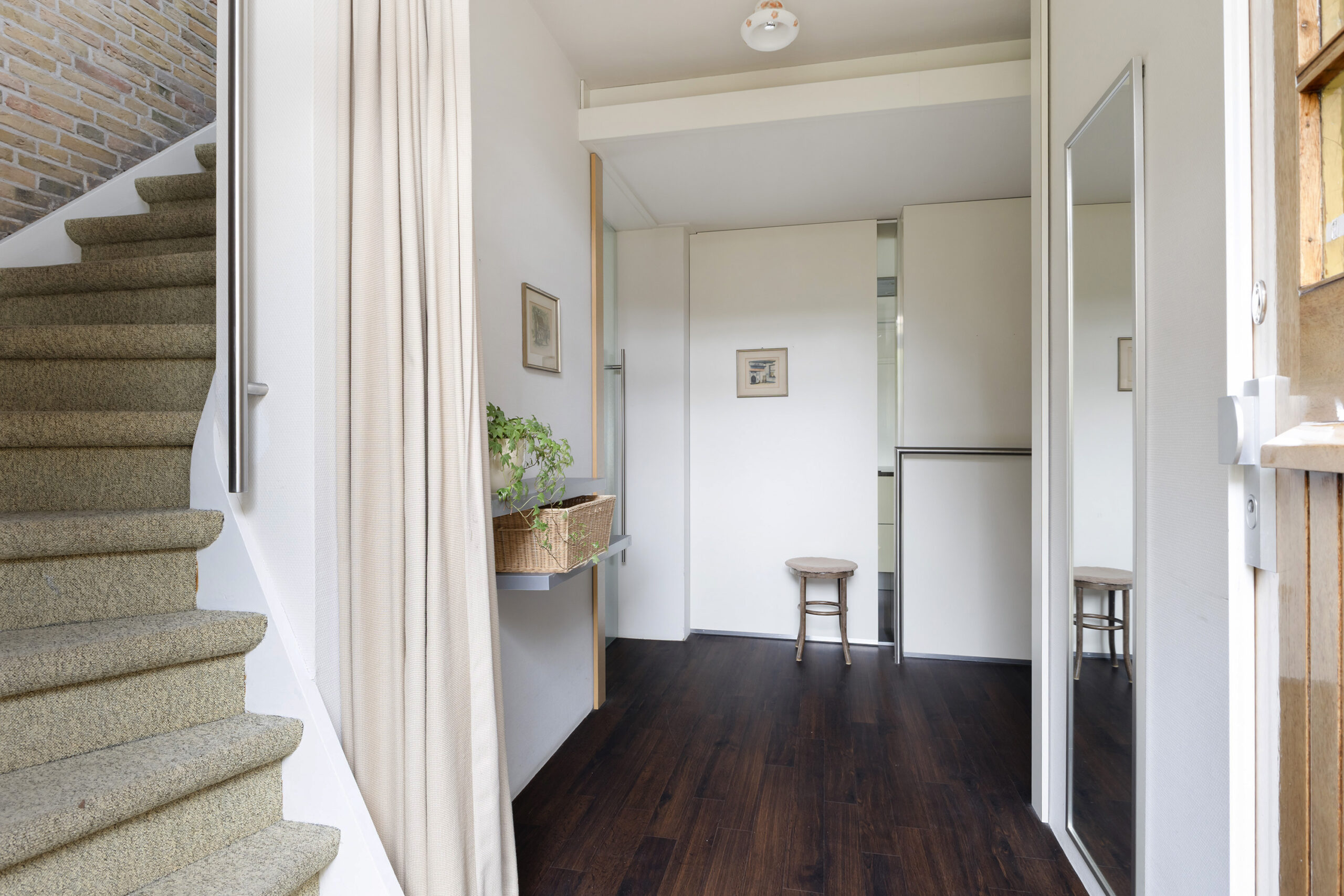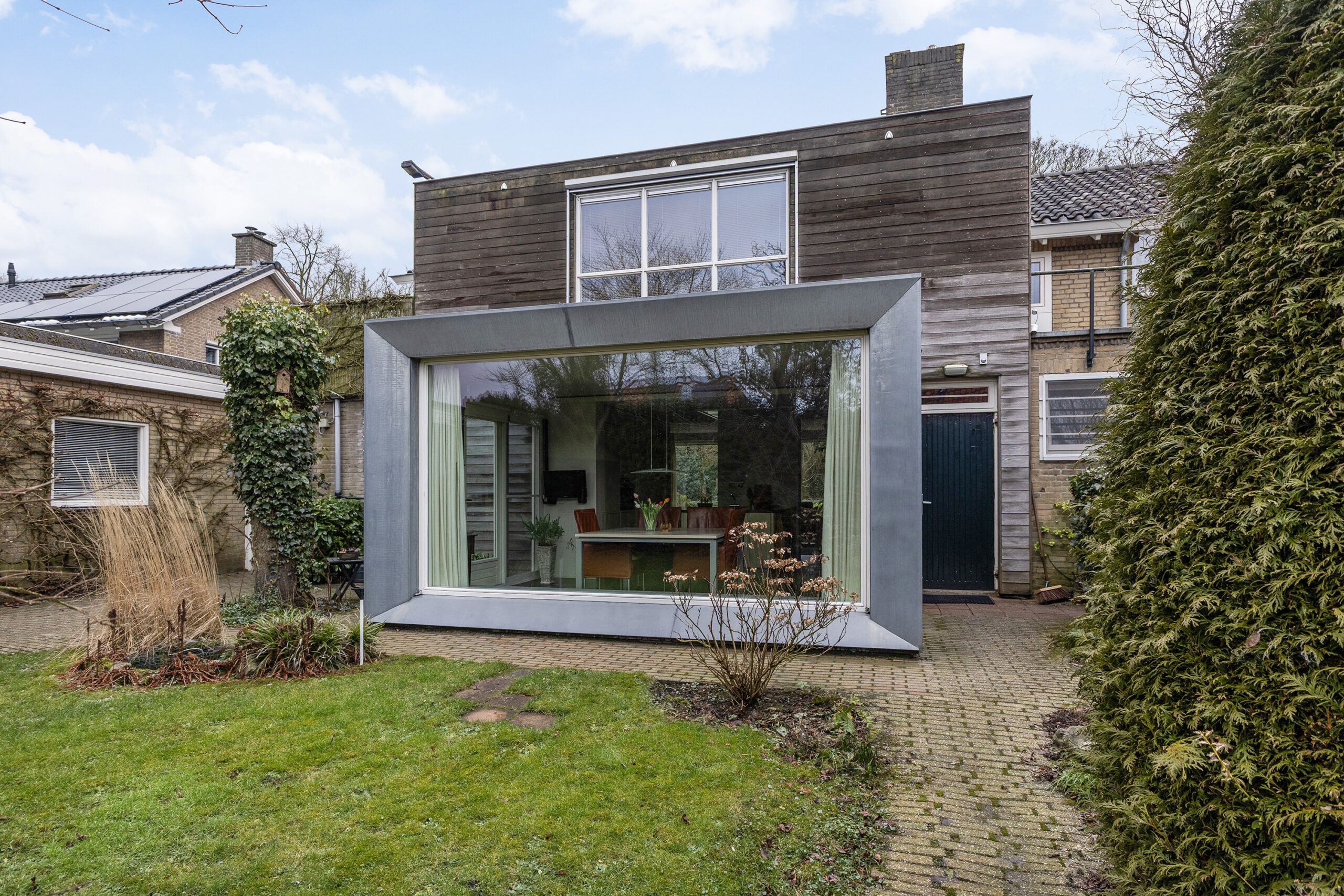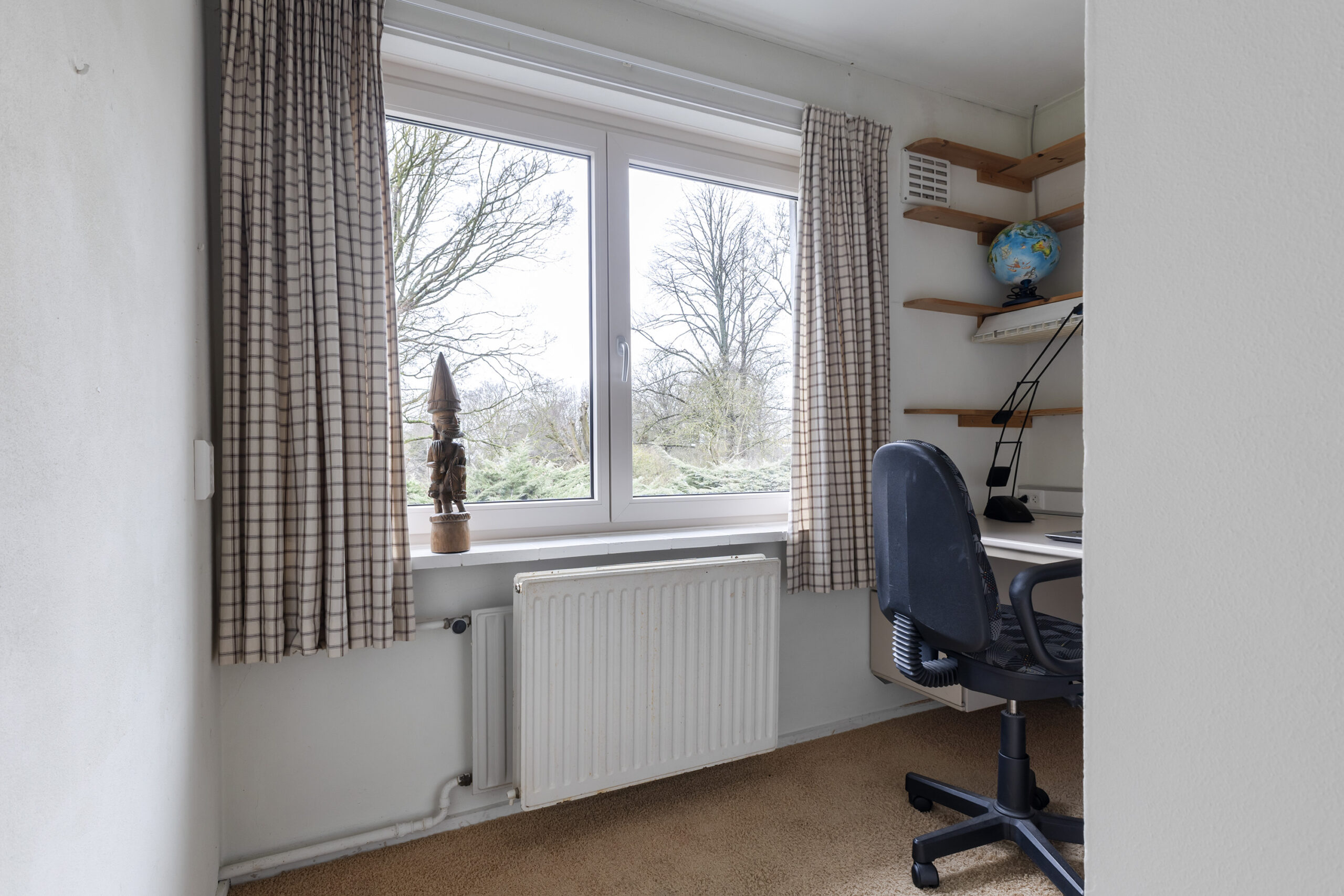 – ruime en speels ingedeelde woonkamer met werkhoek, loopdeur naar de voortuin/oprit en een open verbinding met de keuken/tuinkamer met loopdeur naar de achtertuin