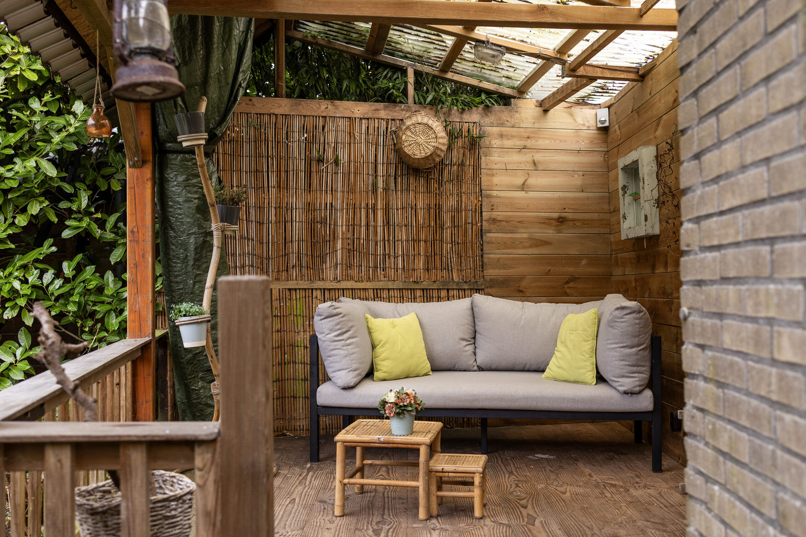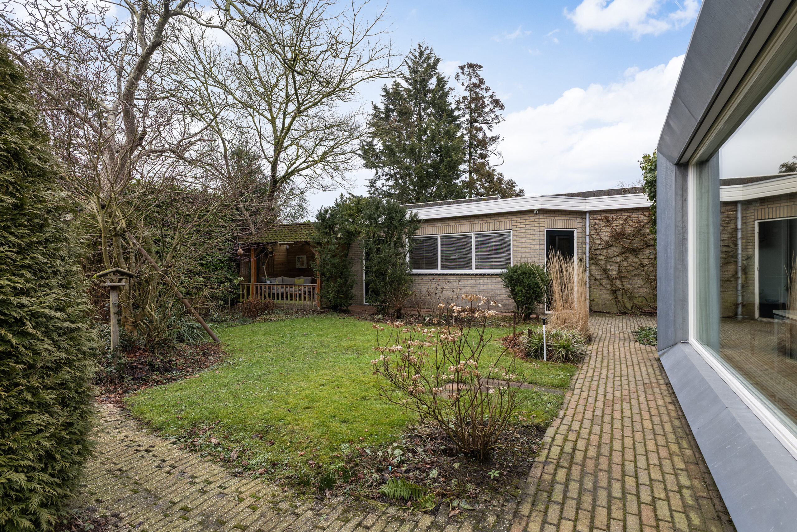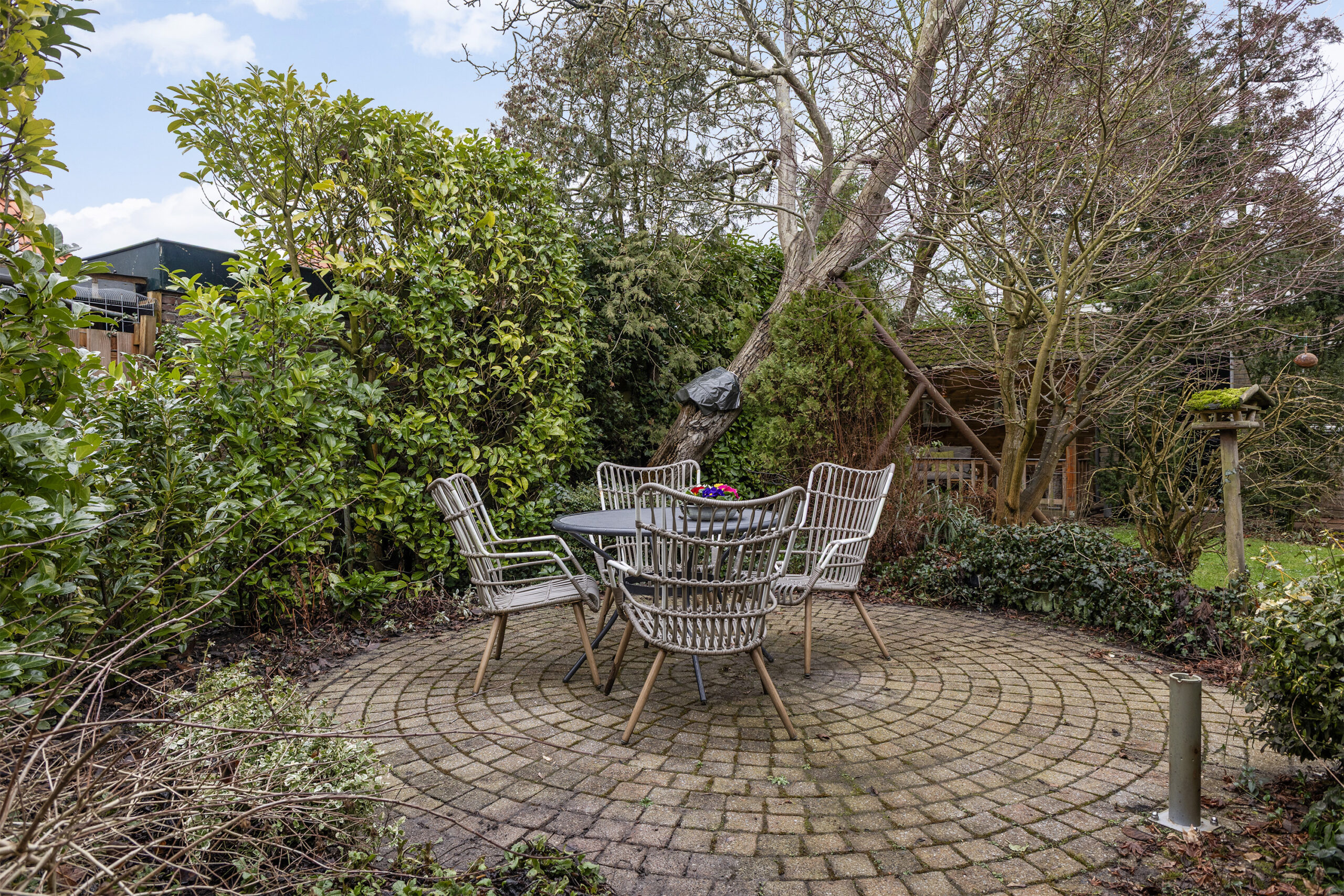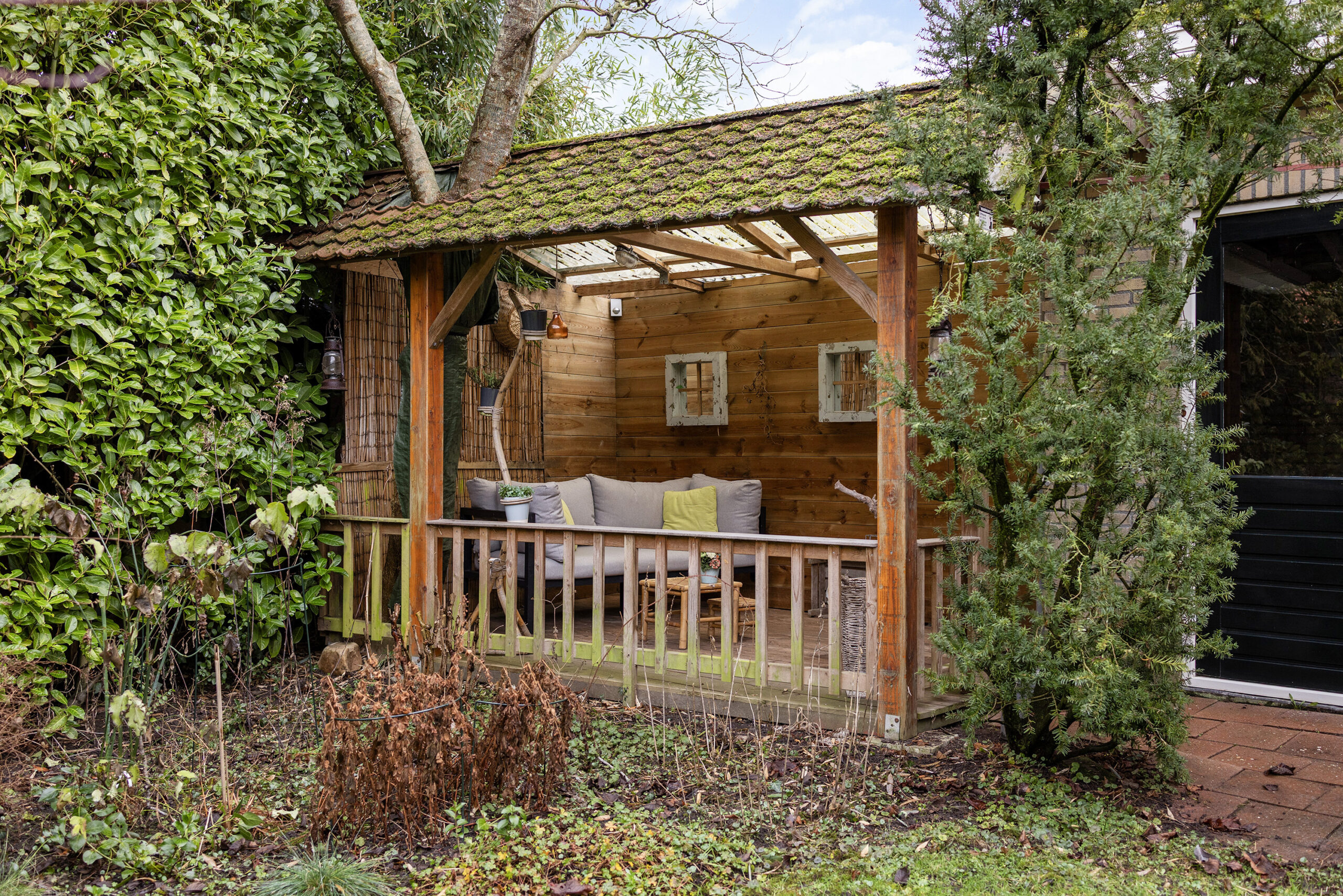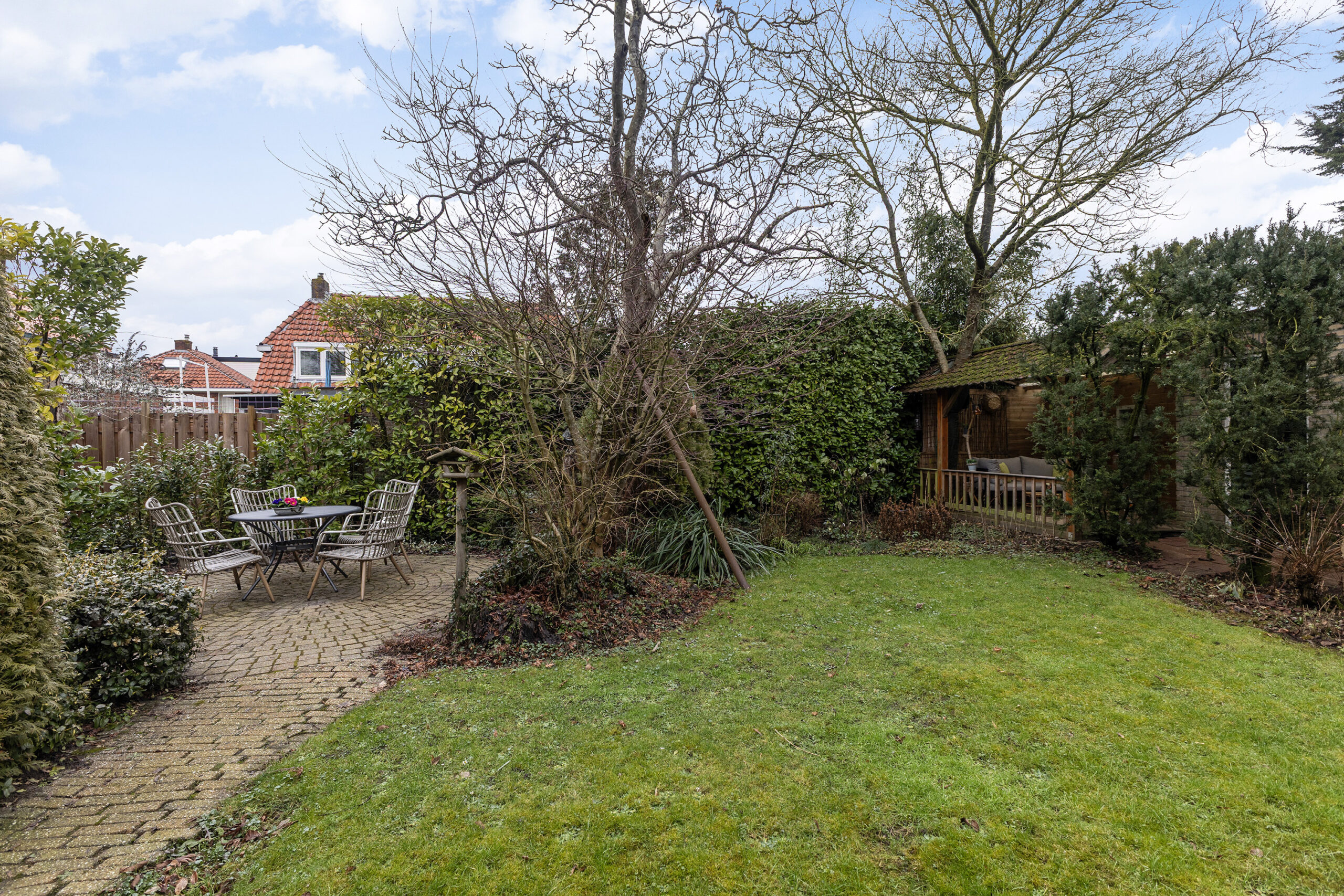 – beschutte achtertuin op het oosten met veel ruimte en privacy, een overkapping en een berging