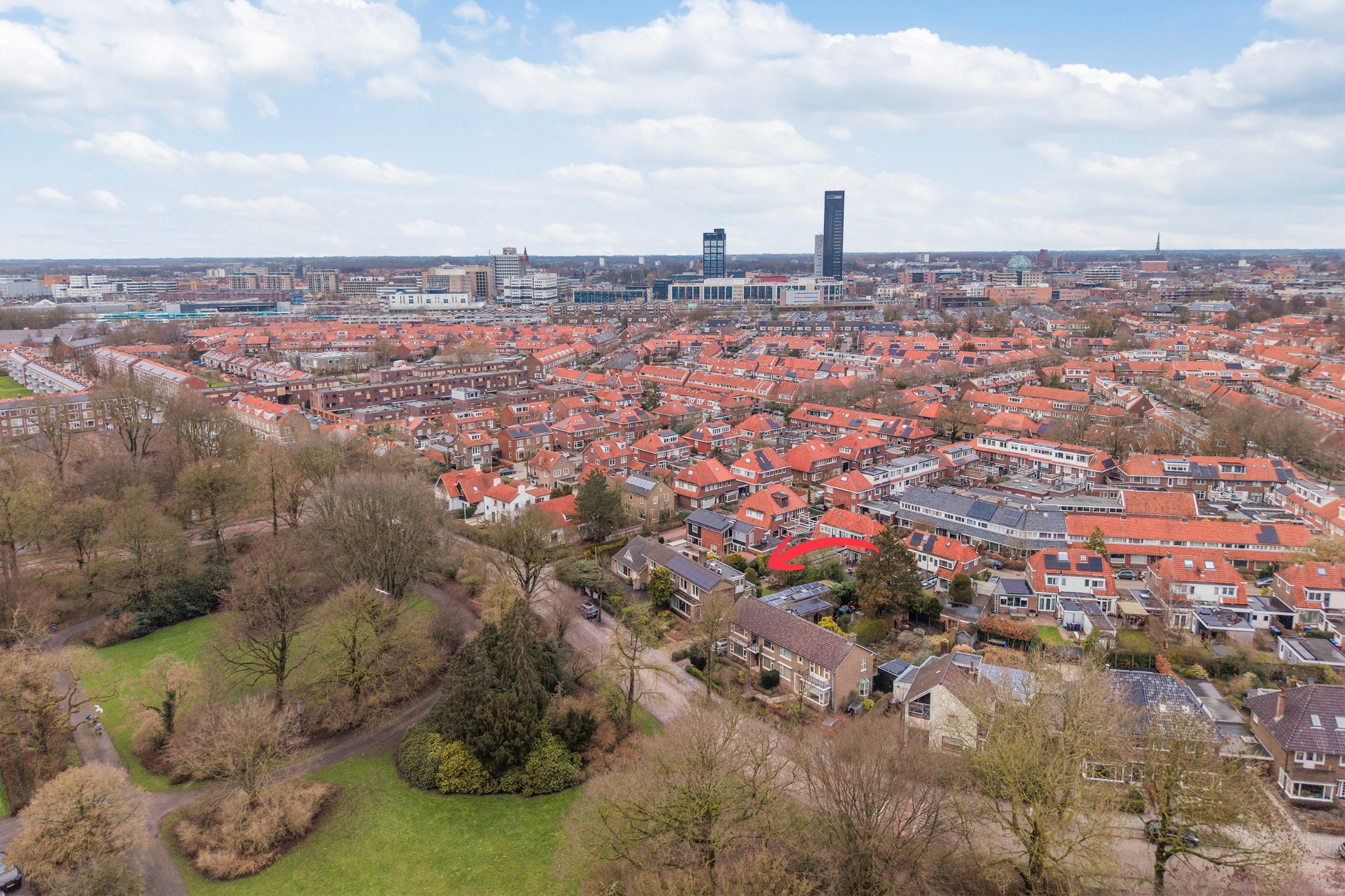Op bijzonder unieke locatie, met vrij en blijvend uitzicht over het groene Julianapark, bevindt zich deze twee-onder-een-kap woning mét royale garage, op een ruim perceel in de geliefde wijk Huizum.
