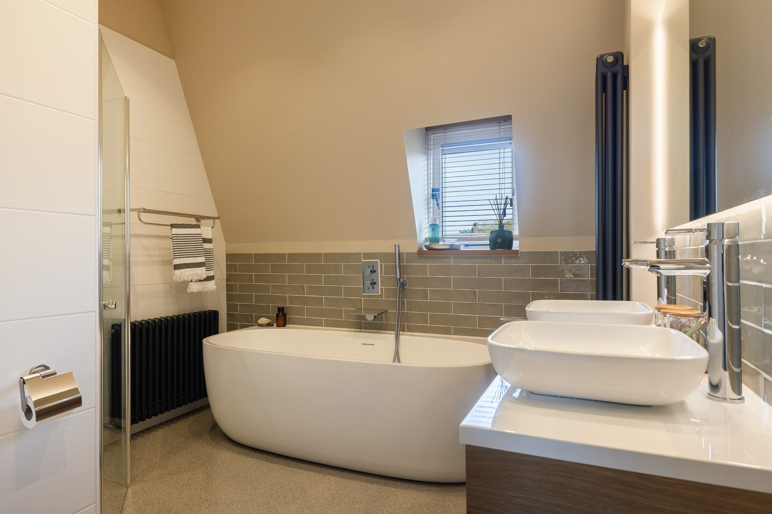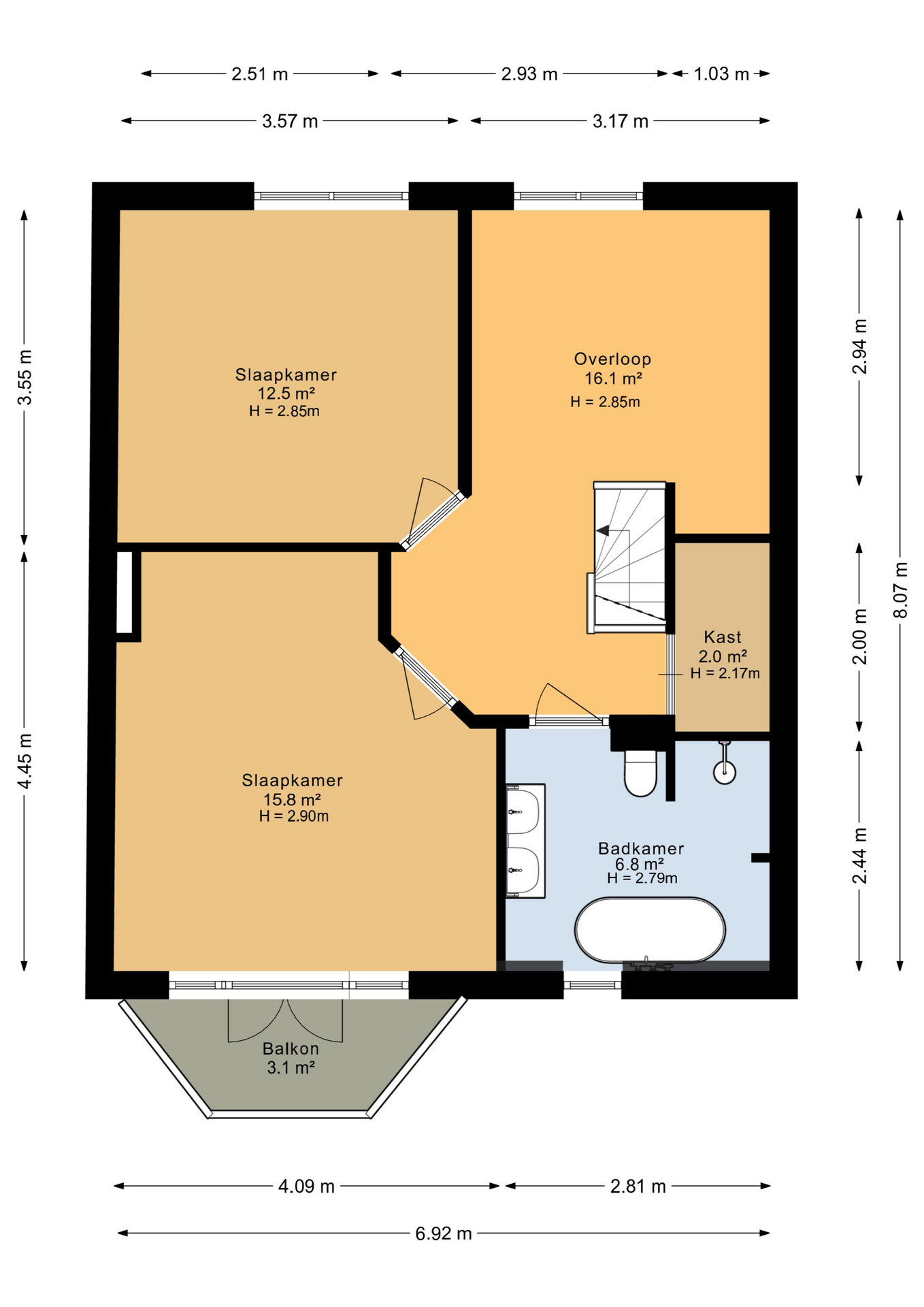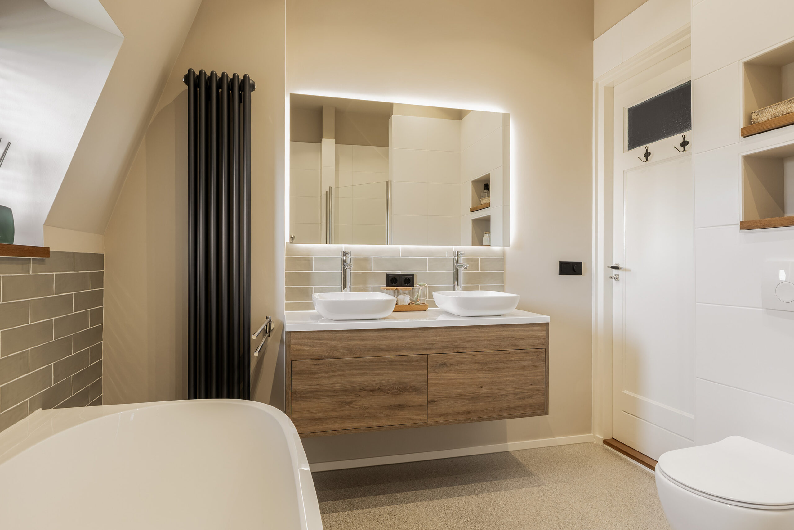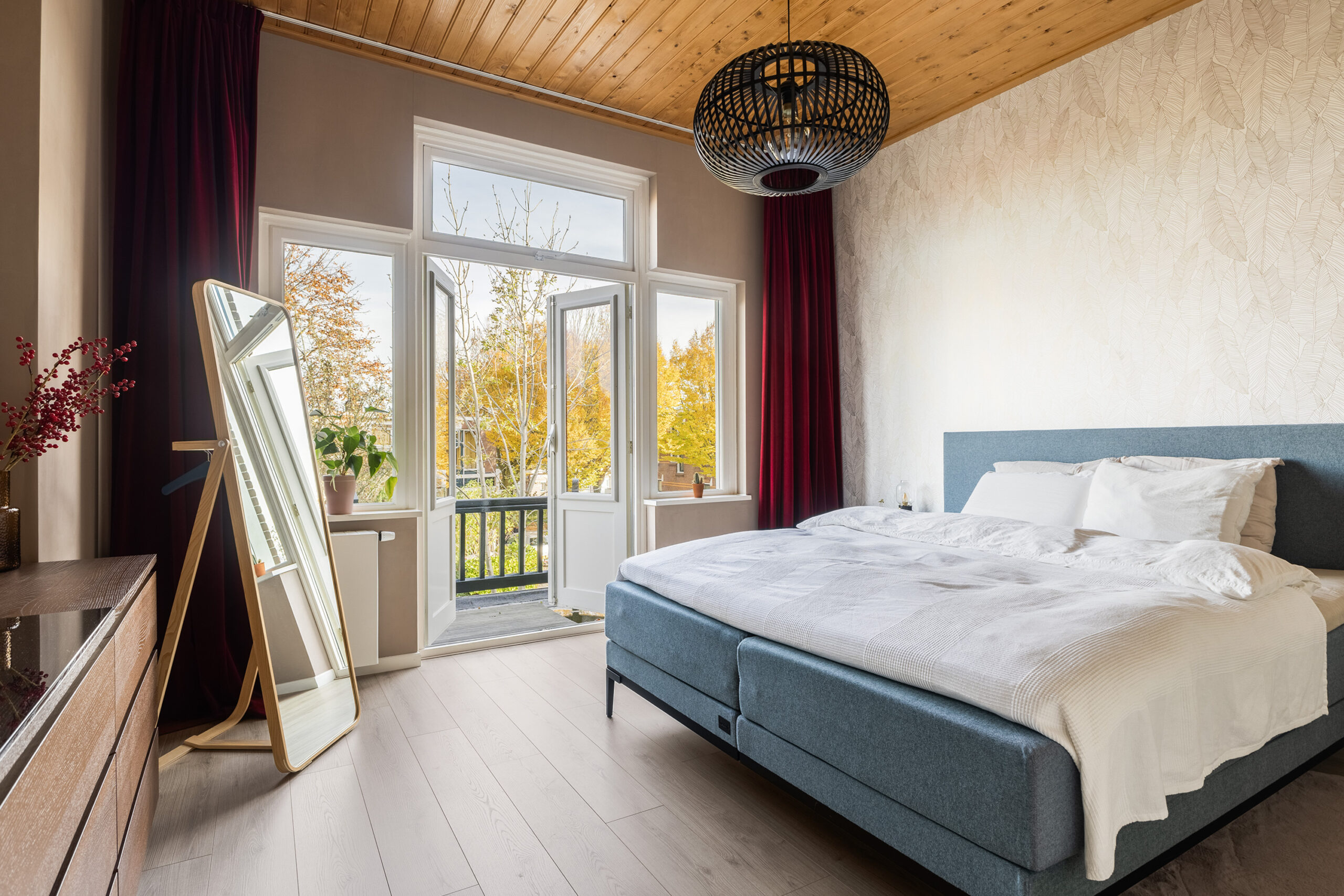 Fantastische werkplek op de zéér royale overloop. Door het weer plaatsen van een muur, is hier gemakkelijk een 3e ruime slaapkamer te maken. De ruime slaapkamer (bijna 16m)² aan de voorzijde heeft toegang tot een balkon op het noorden. De slaapkamer aan de achterzijde is 12,5m². De moderne badkamer is voorzien van ligbad, ruime inloopdouche, wastafelmeubel met dubbele wastafel en toilet.