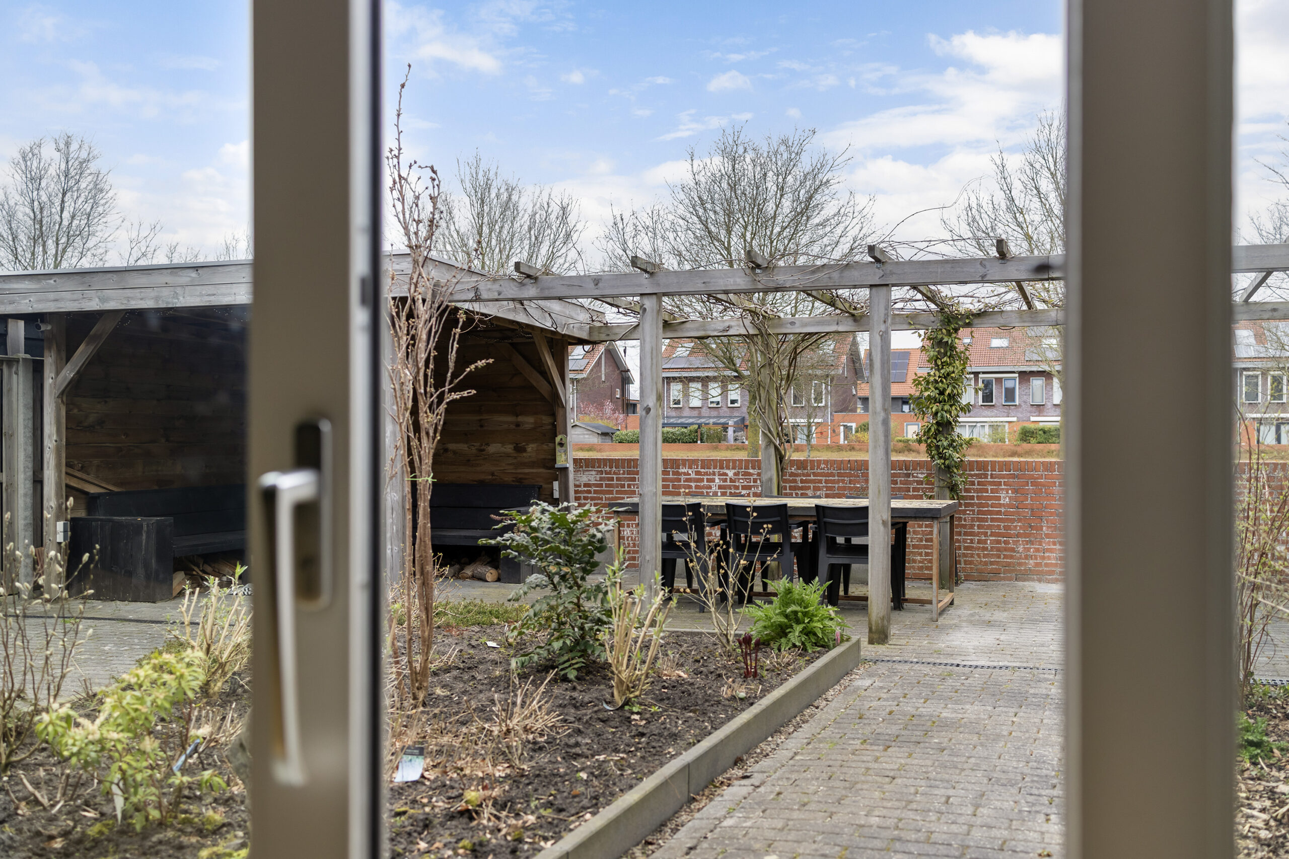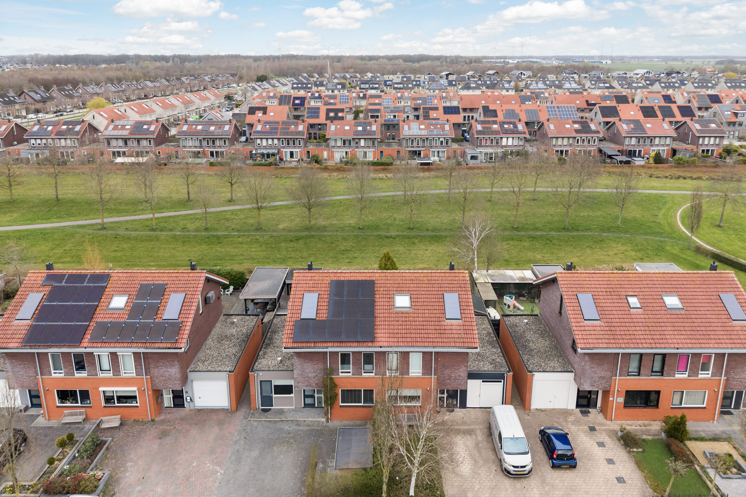 De woning beschikt over een ruime, uitgebouwde woonkamer met een moderne open keuken aan de voorzijde. Op de eerste verdieping bevinden zich 3 slaapkamers en een moderne badkamer. De zolderverdieping is volledig geïsoleerd en leent zich uitstekend voor een 4e slaapkamer. De fraai aangelegde achtertuin heeft een overkapping en geniet vrij uitzicht over openbaar groen. De royale aangebouwde berging van ca. 26 m² en de vrijstaande houten berging in de voortuin zorgen voor meer dan voldoende bergruimte voor fietsen, gereedschap en opslag.